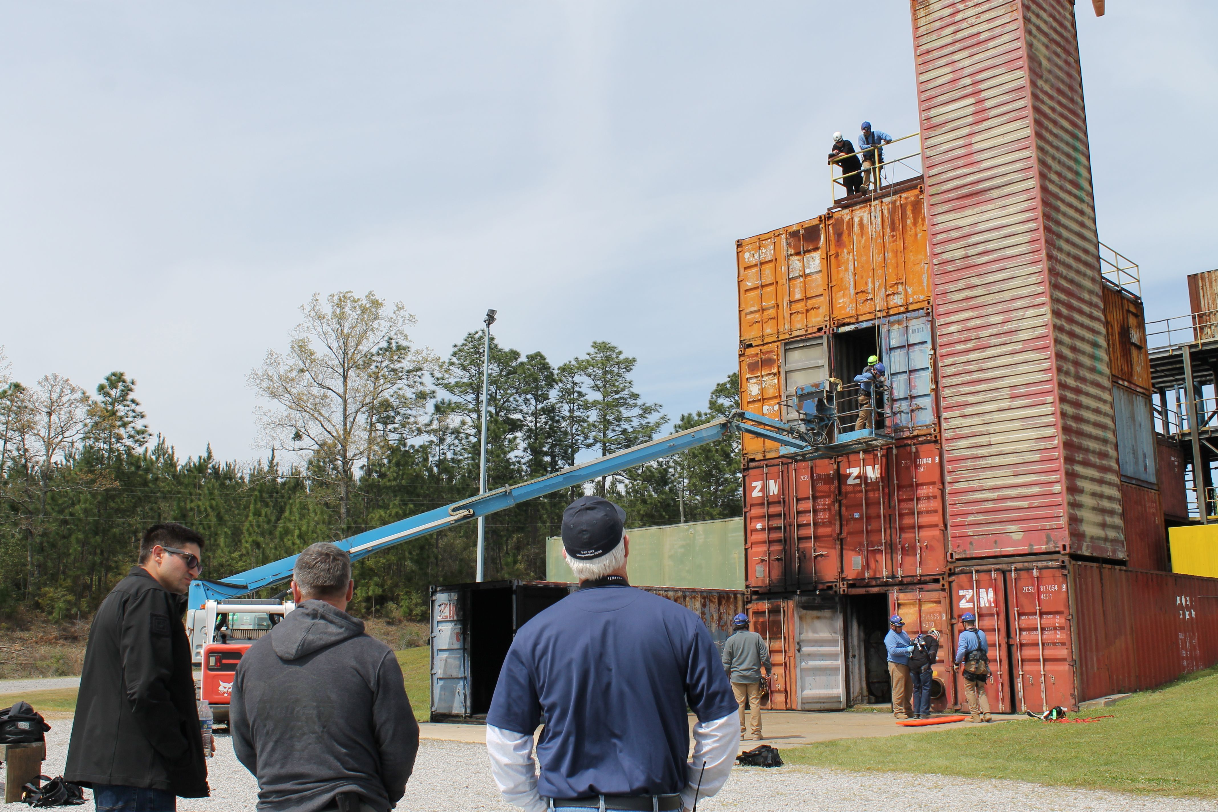 The high-angle event tests teams skills in a simulated scenario.